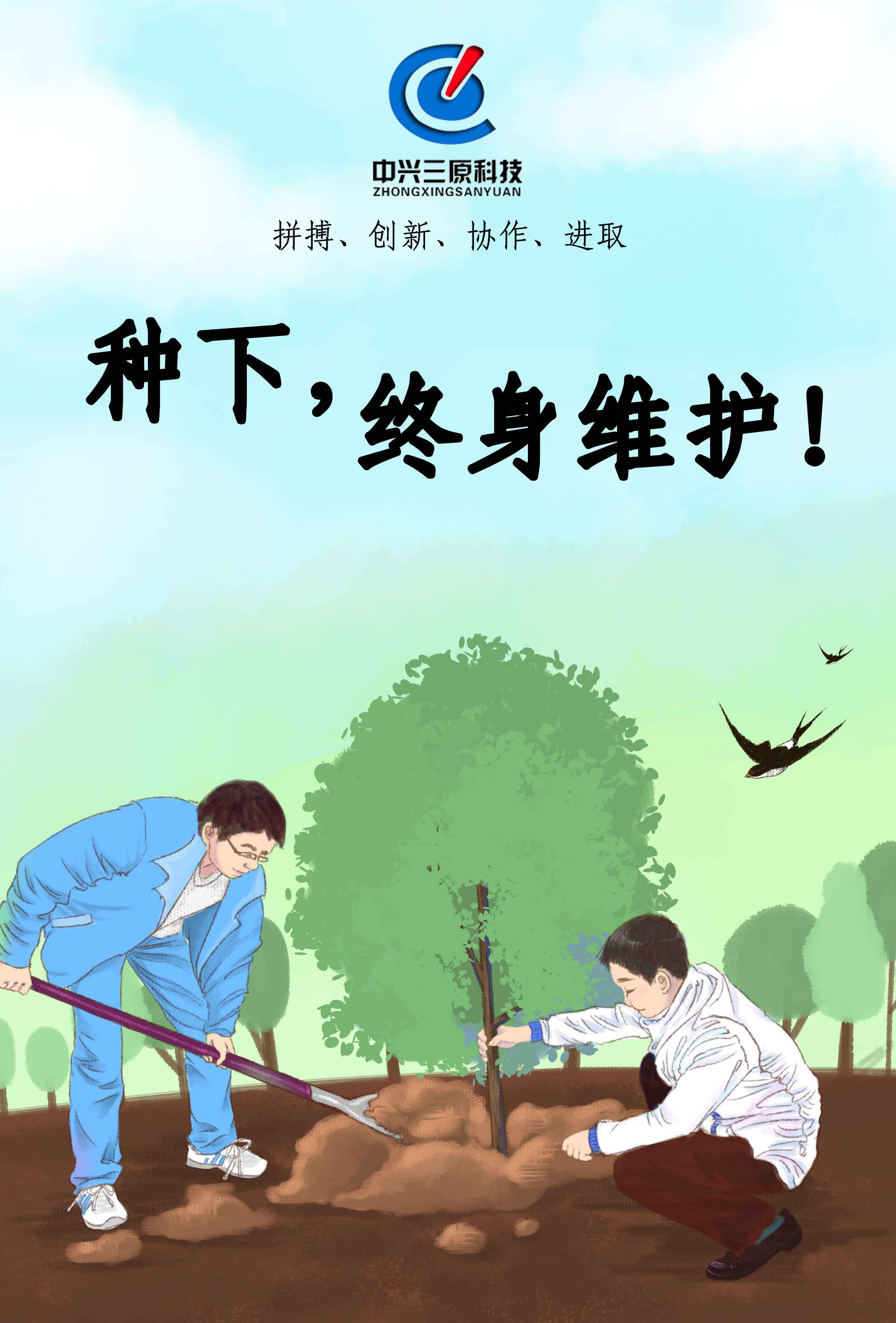 拼搏、創(chuàng )新、協(xié)作、進(jìn)取,種下,終身維護! |