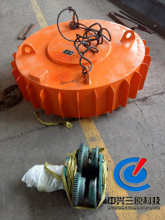 安徽客戶(hù)輸煤段配套一臺電磁除鐵器 適應皮帶寬度:B=1400mm、 磁場(chǎng)強度:≥70mT 額定吊高:400mm 技術(shù)特點(diǎn): 1、磁路采用計算機模擬設計,透磁深度大,磁力強。 2、內部采用電工專(zhuān)用樹(shù)脂澆注,自冷式全密封結構,防塵,防雨,防腐蝕。 3、可有效吸除混雜再非磁性物料中0.1-50KG的鐵磁性物質(zhì)。
